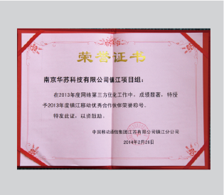 2013江苏镇江移动优异相助同伴声誉 称呼