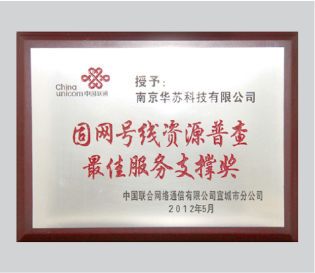 2011年度江苏省诚信建设企业- 2012年度固网号线资源普查最佳效劳支持奖